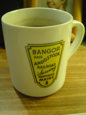 I found this coffee mug at the thrift store yesterday and had to bring it home because I got a thing for choo-choos, but also because “Bangor & Aroostook” sounds enough like a phrase you’d hear in a foreign-language porn film that it makes me grin.
