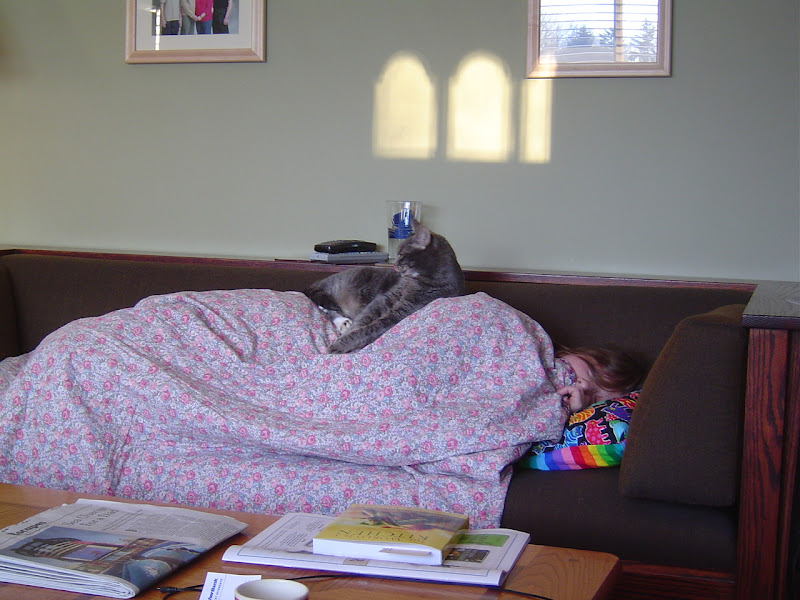 Until a few nights ago we didn’t have a huge problem with any of this. A few minor quibbles, yes. Most notably, when I get a couple of full-grown cats curled up on either side of me, they hold down the quilt like a couple of sand bags, effectively pinning me to the mattress so completely that I wake up several times in the night with pressure sores. Worming out from under the covers to re-pile them at the foot of the bed so I can turn over is a bit of a pain, but not a huge problem.