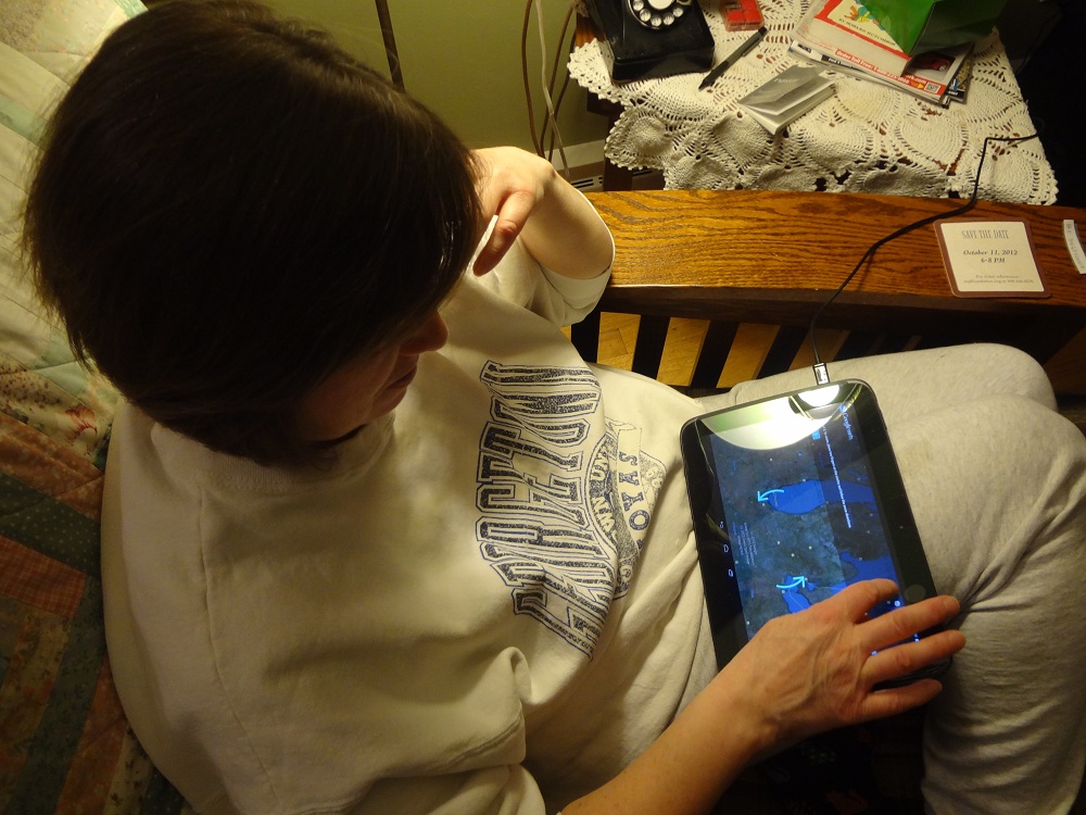 [UPDATE: After three hours sitting in the recliner with her tablet, she’s still reading the instruction manual. There’s something seriously wrong about that girl.]
