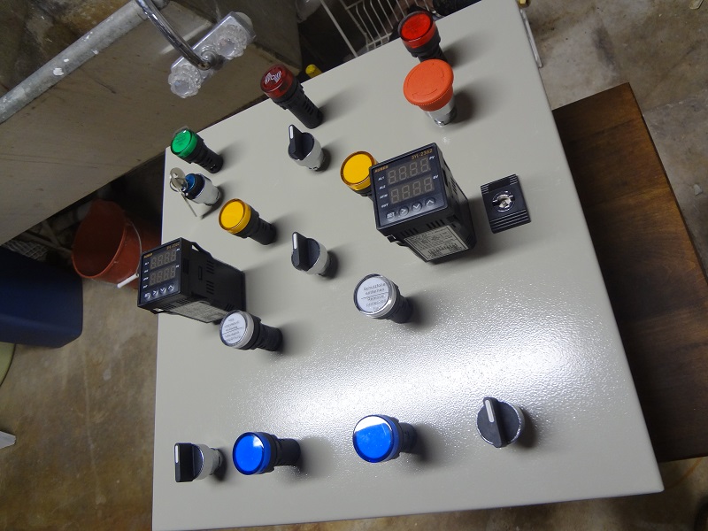 Spent the evening playing doll house with a handful of electric switches and LEDs. This will be the control panel for my electric brewing setup. It’s just about time to start cutting holes, I think.