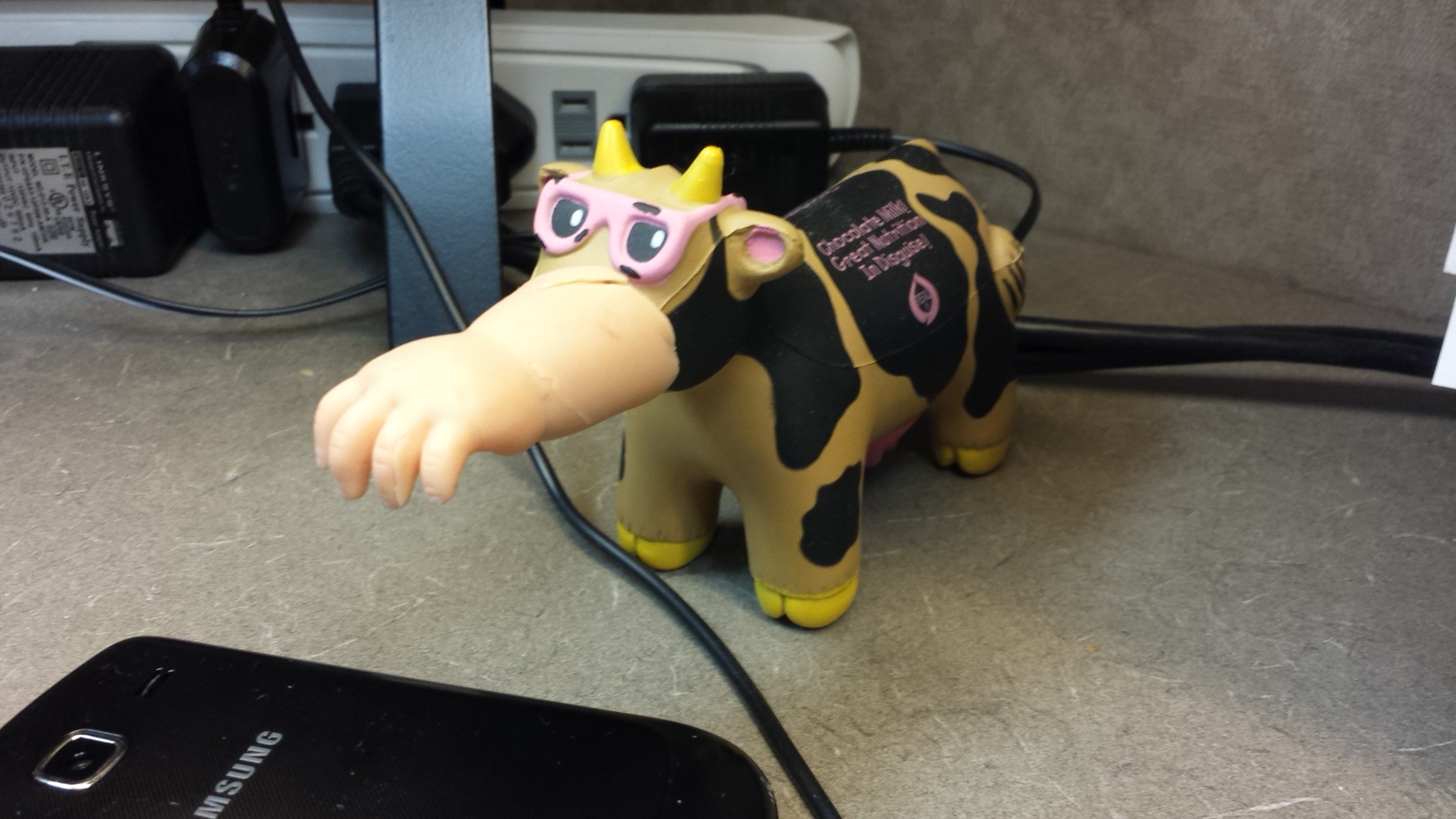 This is a cow with a fist for a face.