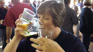 She only has two hands, but that doesn’t stop My Darling B from being a three-fisted drinker! We were at the Great Amherst Beer Festival, hosted by Central Waters Brewing yesterday when B found herself trying to juggle three cups of beer while we took photos of the goings-on. She turned out to be one of the goings-on.