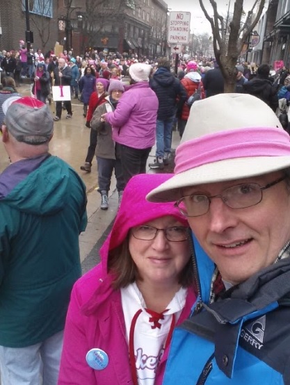 (Fun fact: My Darling B didn’t get the hats at first. We’d been standing in the crowd ten or twenty minutes when her eyes lit up and she said, “Oh! They look like they have cat’s ears!” She knew they were called “pussy hats” but thought the hats were supposed to look like actual women’s, well, you know. She thought everyone had just done a bad job of making the hats because they didn’t look anatomically correct, or even sorta close.)