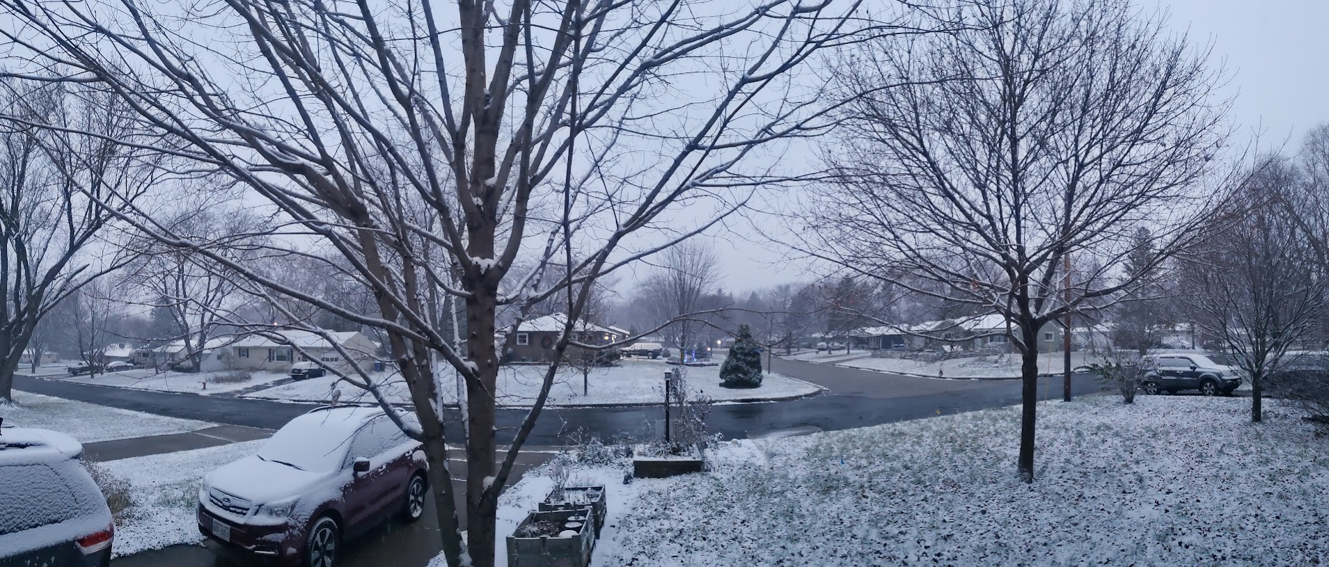 We’ve had a little snow fall before. Some of it even stuck for a little while, but this is the first time I’ve woke up to snow falling and still on the ground, so I guess this is it: The official start of winter. Woo-hoo.