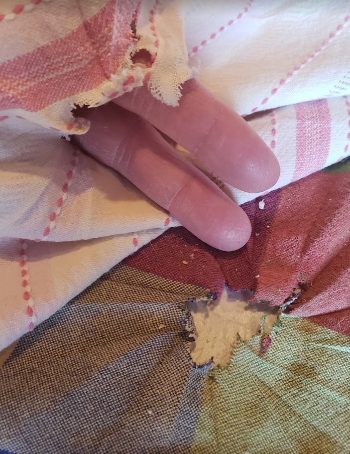 I was sure I had drilled a hole into the dinner table. I don’t know how I didn’t. I had to reverse the drill to back the bit out of the twisted-up mess of the tablecloth just to get a look at how bad the damage was. There wasn’t a scratch on the mahogany surface of the table. Not one I put in it with the power drill, anyway. Totally lucked out. Well, except for ruining two table cloths.