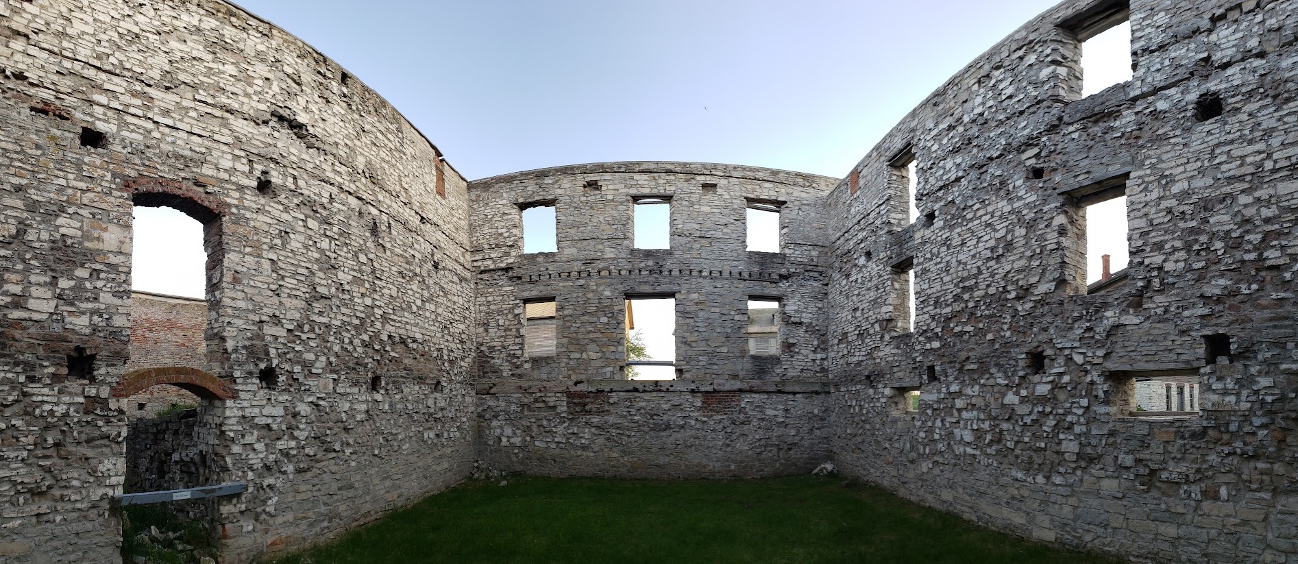 The company store is a proper ruin now. The outer limestone walls are left standing but the roof and all the windows are gone. It looks as though there was once a basement level, a ground level, and an upper level, but all the floors are gone, too. It’s as open and empty as a bombed-out cathedral.