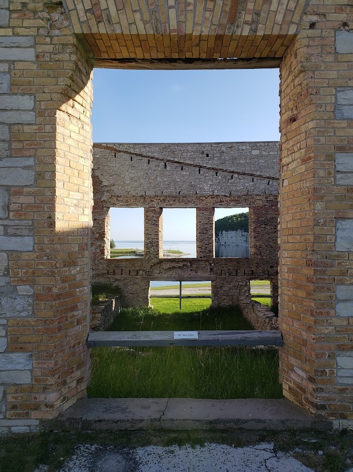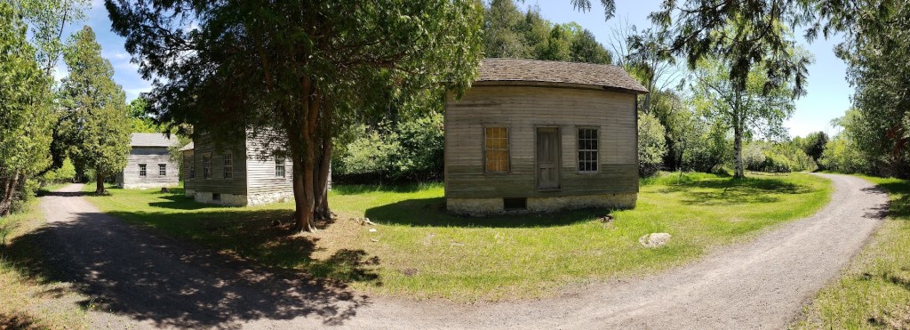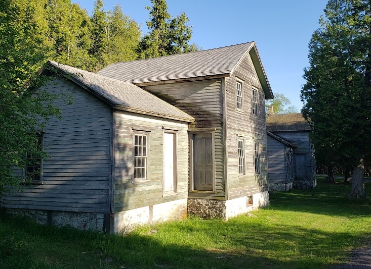 The middle class residents of Fayette lived in small wooden-frame houses on the west side of the spit, as far from the furnace complex as possible, with a tree-covered hill between them. Weirdly, the most high-class house in town, the supervisor’s, was on the near side of the hill overlooking the harbor, I guess so he could have a clear view of the furnaces? Doesn’t seem like a prime spot to me.