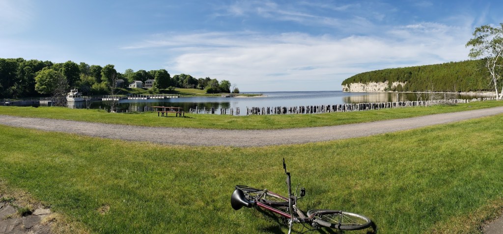 I took my bike to Fayette and it’s a good thing I did because I did so much hiking the first two days that on the third morning I was so badly hobbled by blisters that I couldn’t enjoy walking around the park much. On the plus side — always trying to see the plus side — the blisters encouraged me to stop frequently for long contemplative sits on the few benches in the park (Hey! Michigan DNR! Your historic park needs more benches! Get on that!). But on the very much negative side, those blisters hurt! It’s been a while since I’ve had blisters that were as painful. Here’s hoping I never have to suffer blisters like that again.